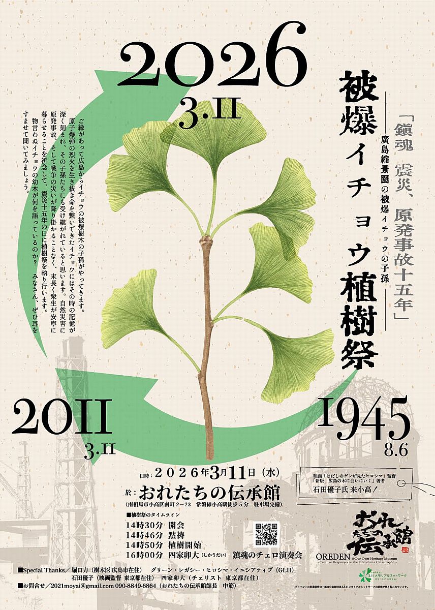 - 2026年3月11日、「被爆イチョウ植樹祭」を開催します! 【おれたちの伝承館】(Postbox-newsR Provided by Like-s)- 2026.03.08(日) 08:00