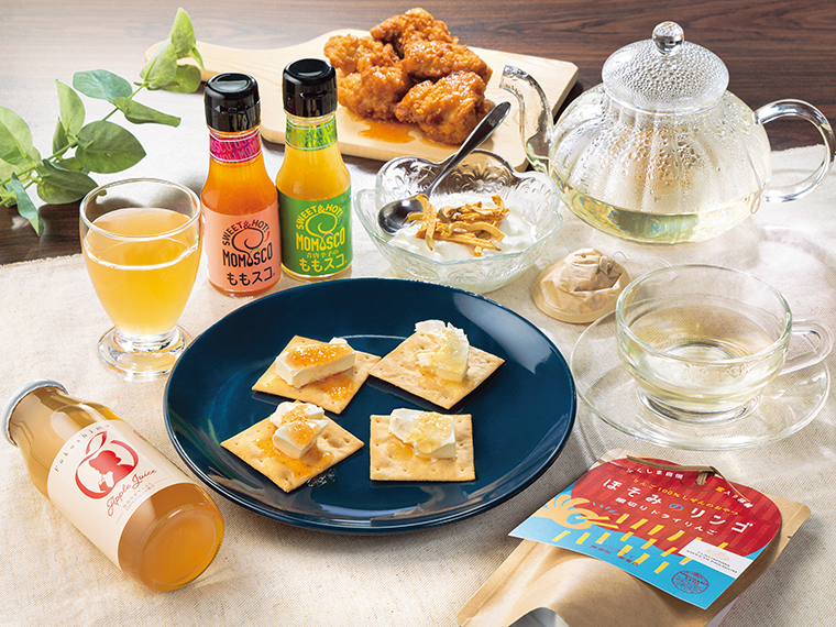 【自慢の桃と、りんごを使用。ユニークな加工品セット】