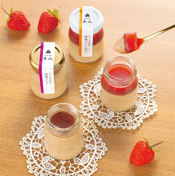 福島市土湯温泉にある宿「ニュー扇屋」が展開するプリン専門店『源泉湯庵 森山』。自家源泉の湯でつくる温泉玉子を使った、多彩なプリンを生み出している。