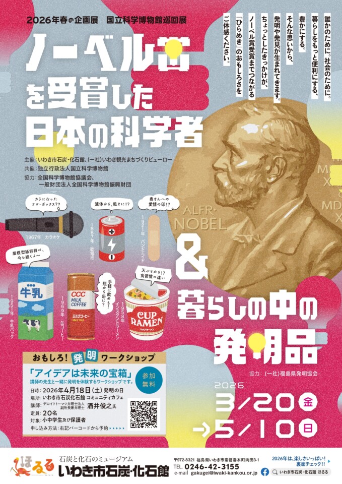 - 「ノーベル賞を受賞した科学者」&「暮らしの中の発明品」展開催中!【いわき市石炭・化石館ほるる】(Postbox-newsR Provided by Like-s)- 2026.03.31(火) 07:30