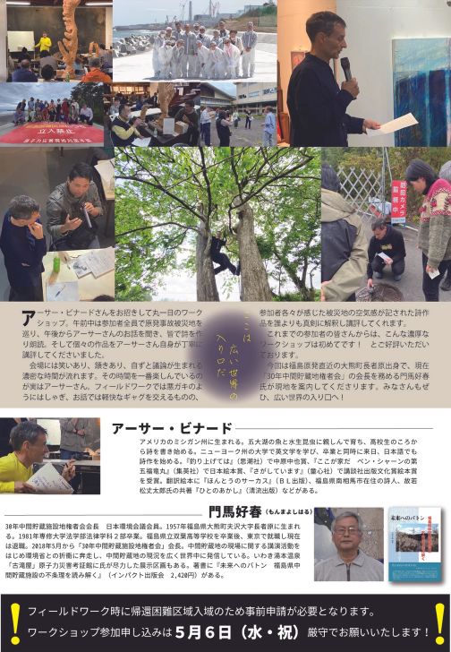詩人アーサー・ビナードさんと帰還困難区域を含む被災地を巡り、詩作にチャレンジするワークショップの後、朗読発表します。丁寧な講評も人気のイベントです。