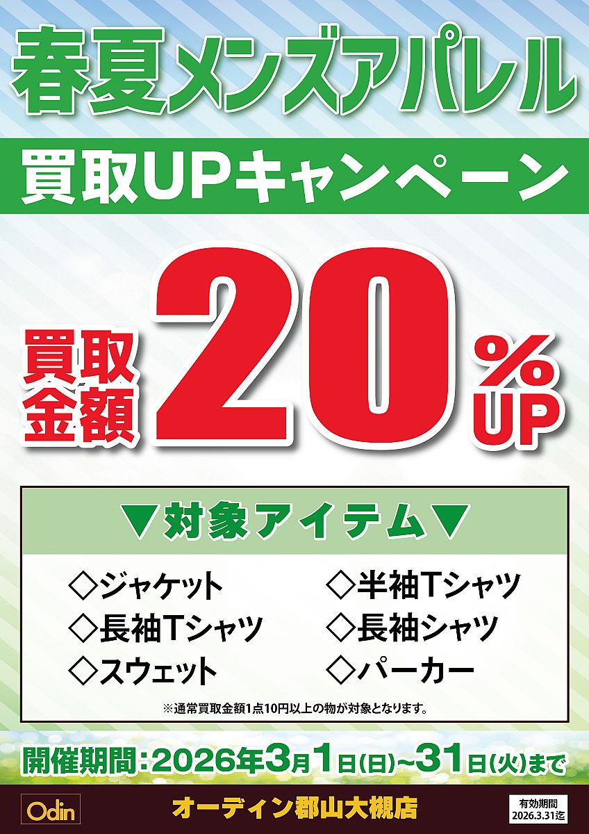 - 春夏メンズアパレル買取UPキャンペーン オーディン郡山大槻店にて31日まで開催中!!(東都クリエート株式会社)- 2026.03.26(木) 10:50