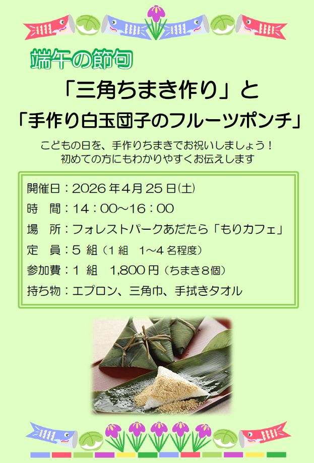 - 「こどもの日」を手作りちまきでお祝いしましょう!【フォレストパークあだたら】(Postbox-newsR Provided by Like-s)- 2026.03.28(土) 07:00