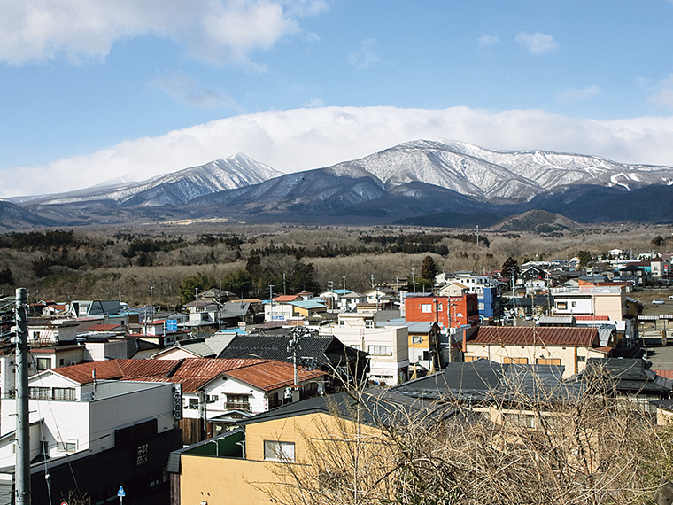 遠刈田温泉街からほど近い「かっぱの宿 旅館 三治郎」付近から眺める蔵王連峰。4月下旬から5月中旬頃まで、エコーラインの脇に高く積もった「雪の回廊」を車でドライブできる。