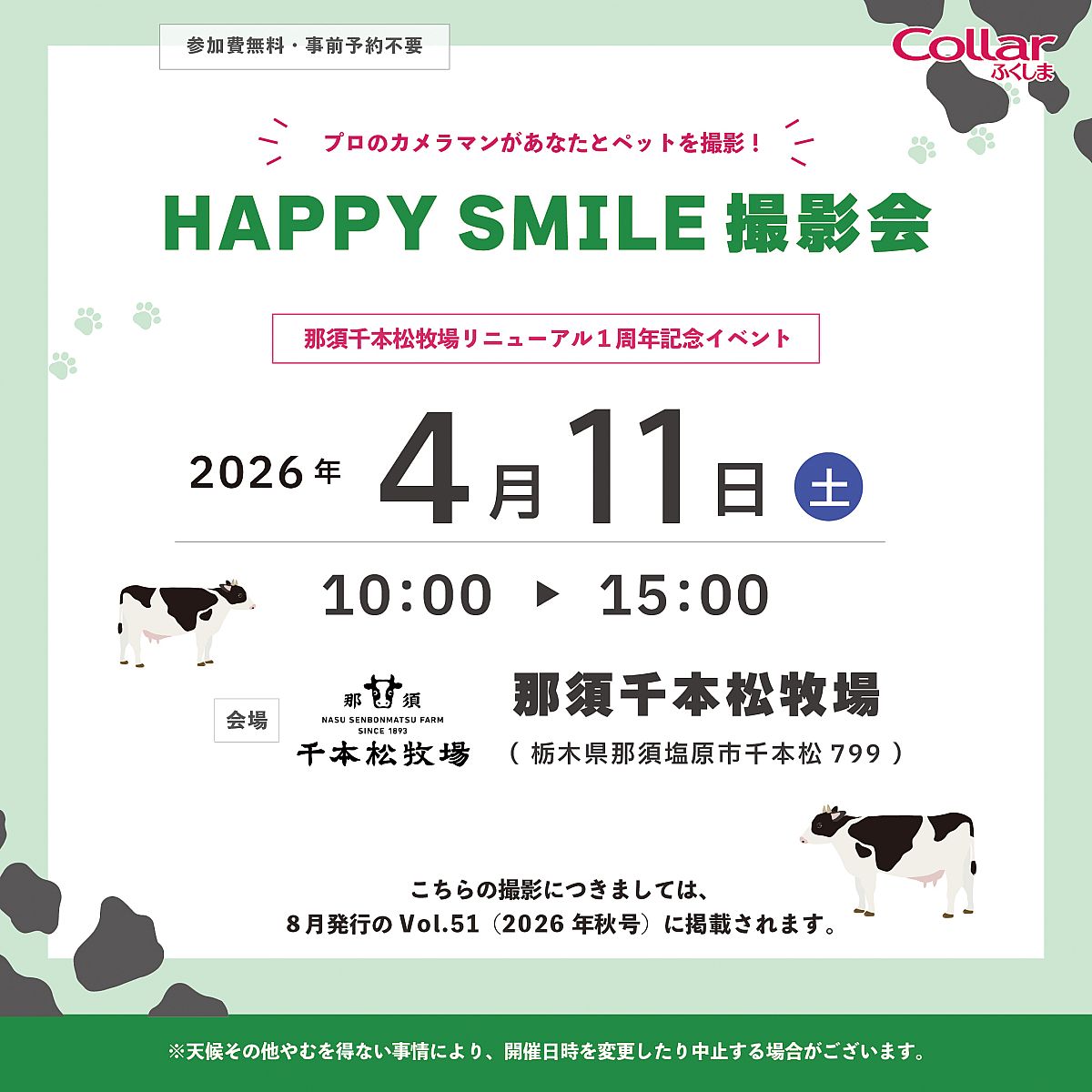 ぜひ"那須千本松牧場"さんへ遊びに来て、ワンちゃんマルシェを楽しみながら、「HAPPY SMILE」撮影会にもご参加ください🐾
