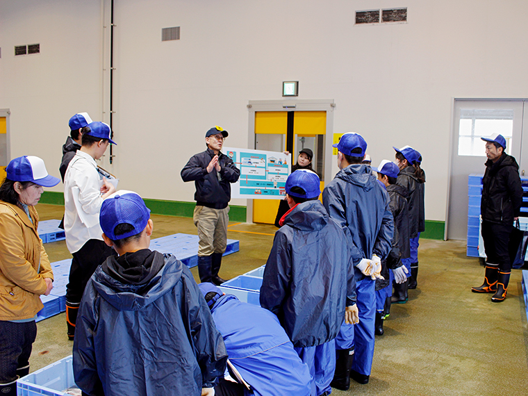 小名浜魚市場から移動して「小名浜荷捌き・加工流通倉庫」へ。ここは魚の流通・加工の拠点。小名浜魚市場と連携することで、水揚げから加工、流通までを一元管理しています。