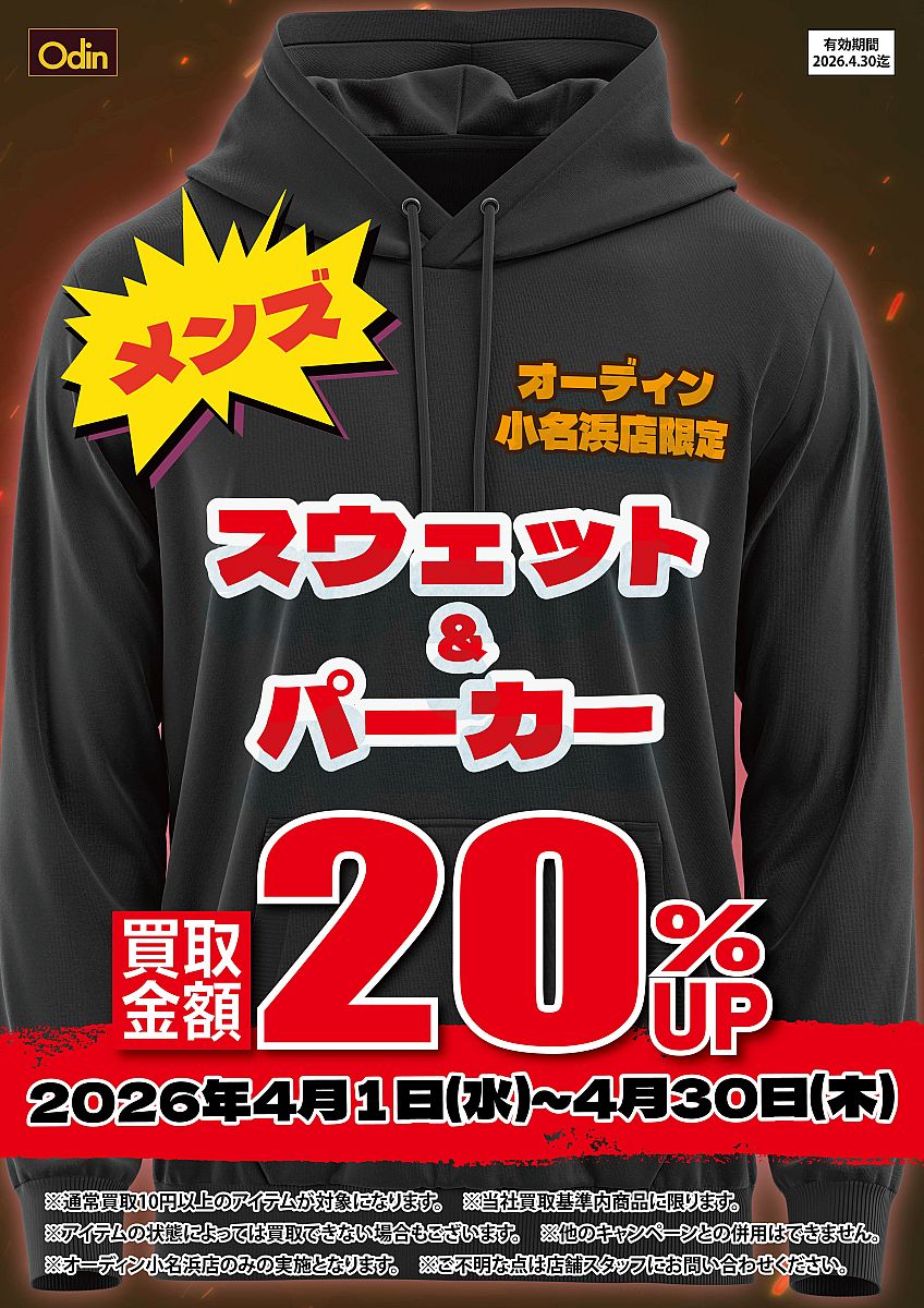 - オーディン小名浜店限定×スウェット&パーカー買取UP(東都クリエート株式会社)- 2026.04.14(火) 16:07