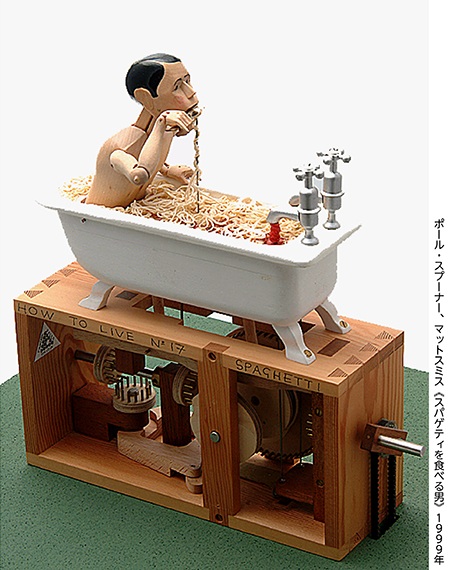 イギリス生まれの自動人形の代表的な美術家ポール・スプーナー。愛嬌のある人形作品が特徴で歯車仕掛けで動くユーモラスな人形は、日常の一場面を独特の視点で切り取る。