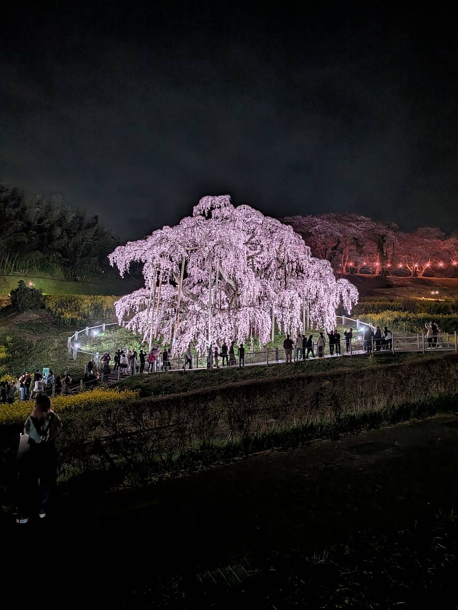日中の滝桜とライトアップされた滝桜に感動しました。