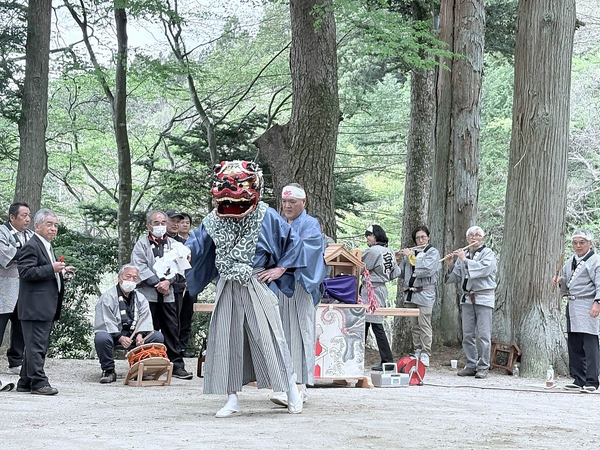 川内村の高田島地区では、諏訪八幡神社の春の例大祭が開かれ、400年の歴史ある三匹獅子が奉納されました。