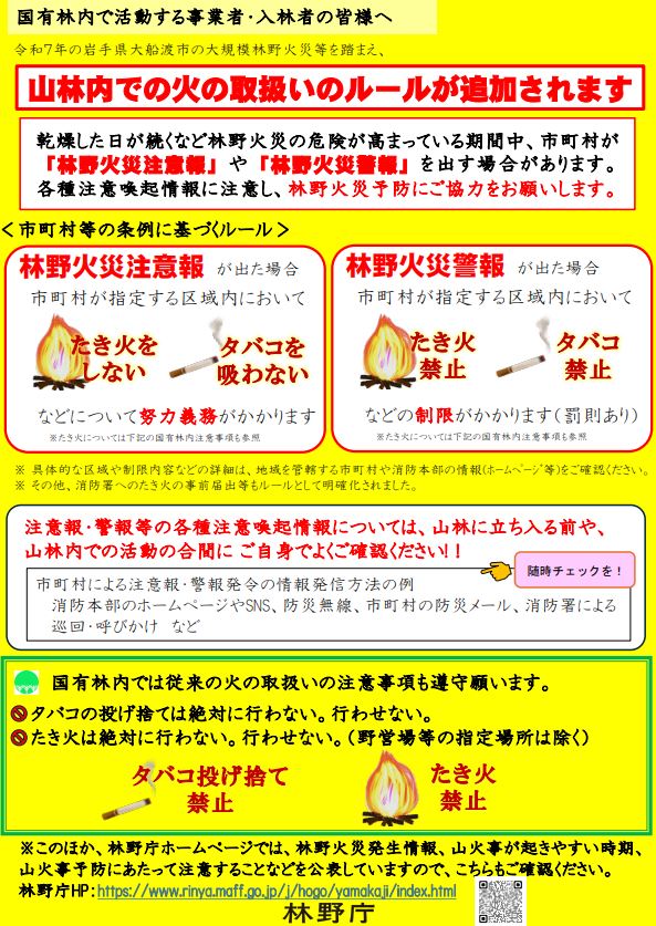 1月1日から「林野火災注意報」や「林野火災警報」の運用が開始されます。