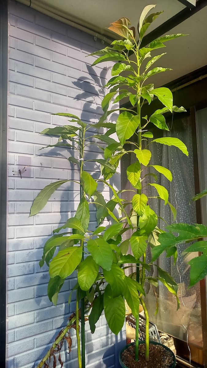 「昨日のありすさんのメッセージでアボカドのお話ありましたが、お義母さんが育てているアボカドの今朝撮った写真を送ります。2m以上は有るかと思います。摘芯しないでどこまで大きくなるのか、研究?お遊び感覚で育てているみたいです(笑)