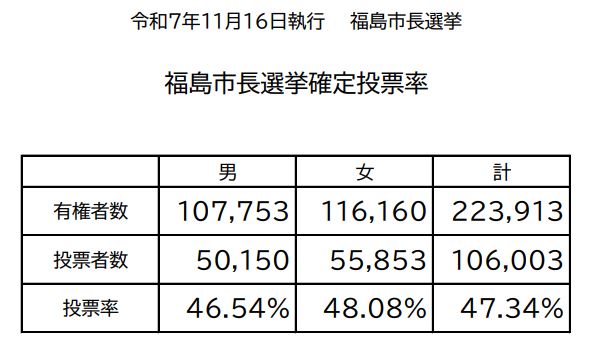- 福島市長選挙 確定投票率(ラジオ福島)- 2025.11.17(月) 07:06