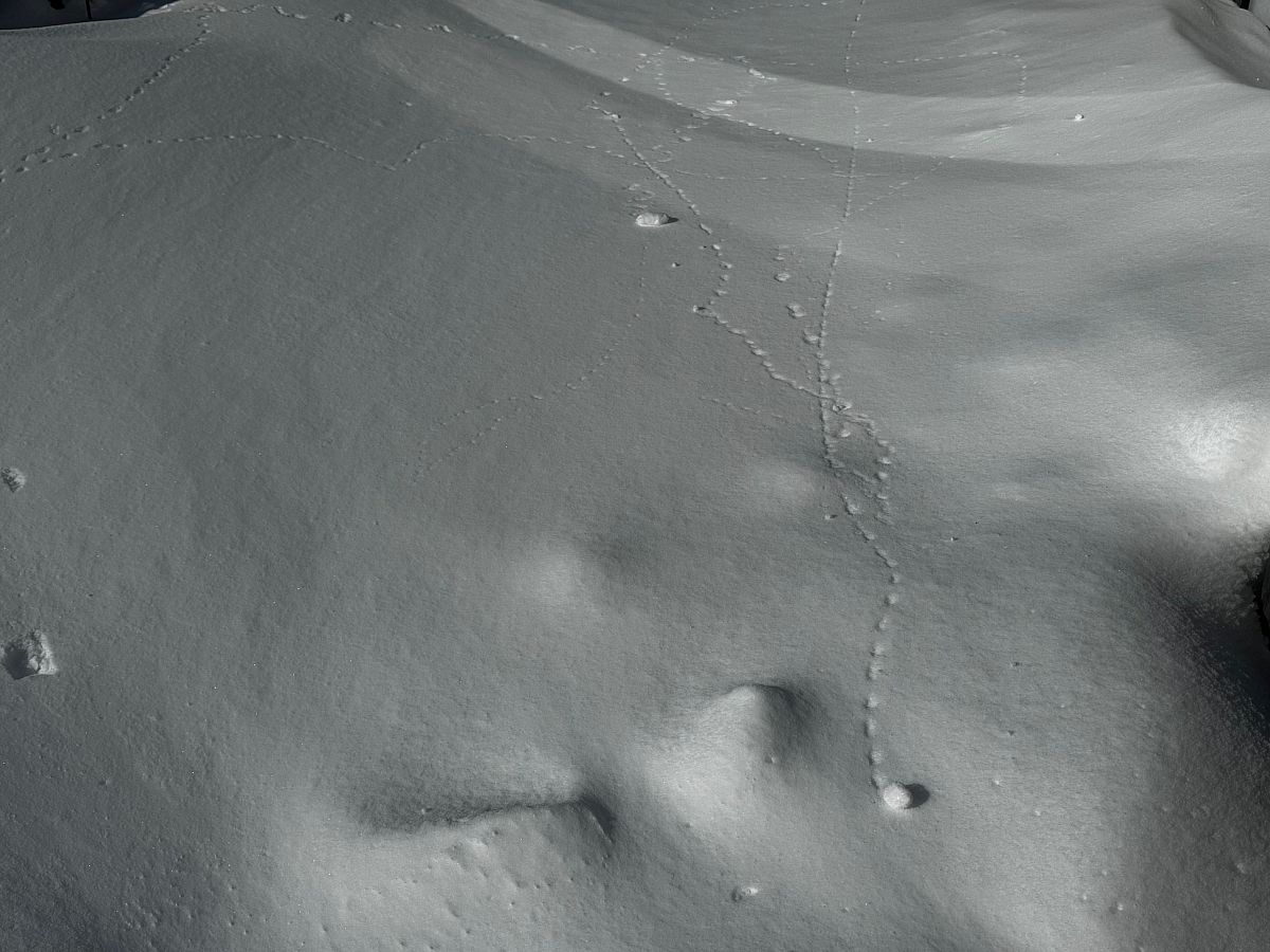 庭にまたまた雪玉の足跡発見!